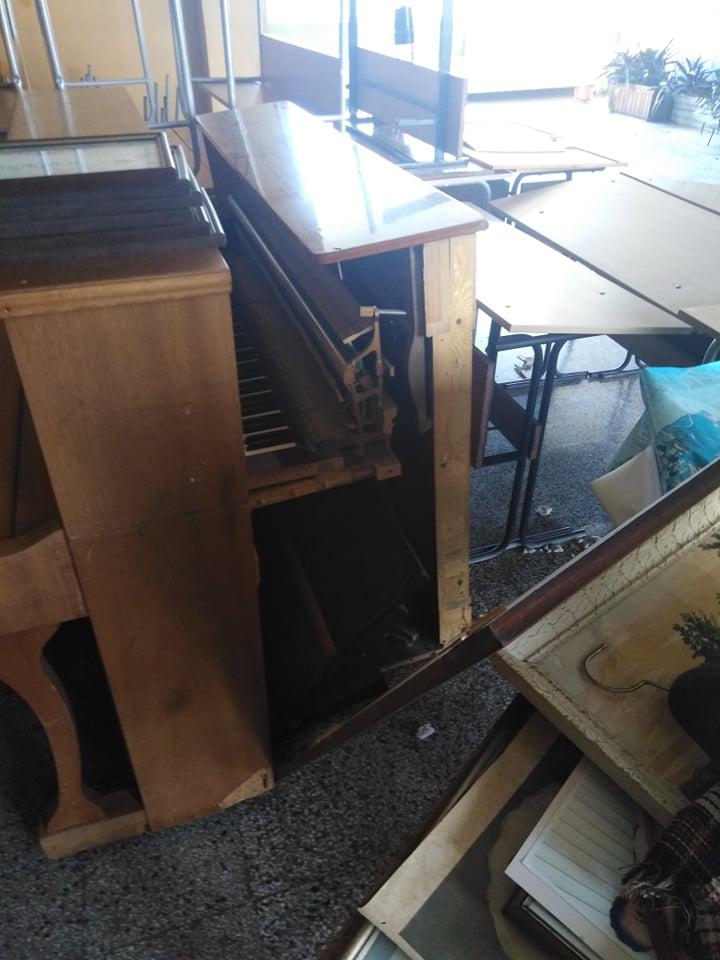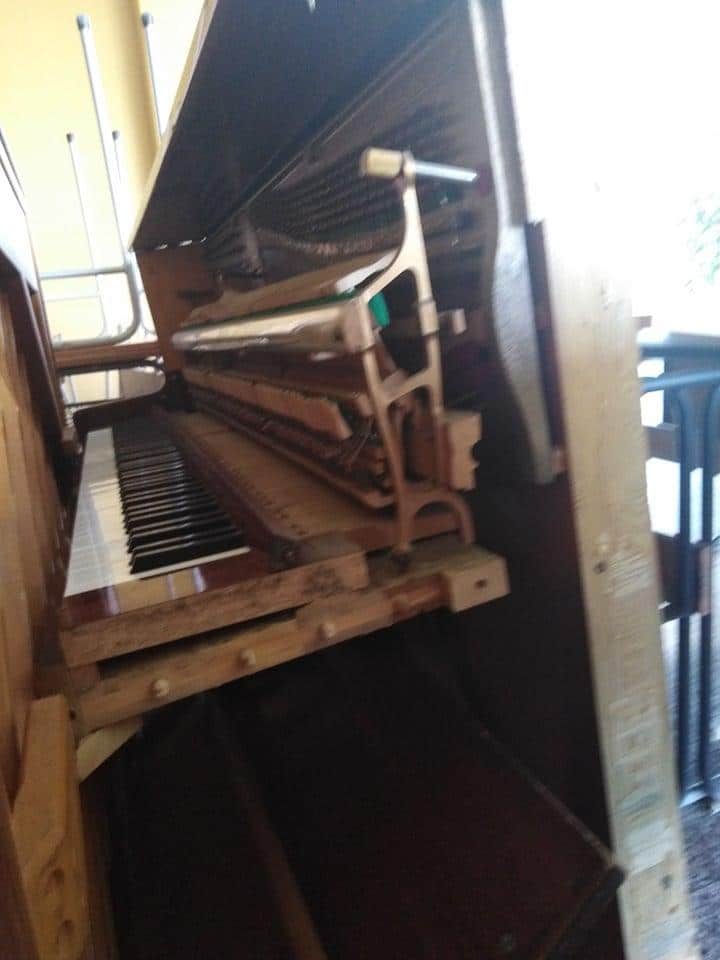 Едното пиано бе в почти „насипно състояние“. А то само беше изместено в коридора. Предстои да се смъкне от четвъртия етаж и после да се пренесе в нова сграда. То вече няма как да бъде използвано. По-добре да се метне през прозорците на четвъртия етаж, защото така общината ще спести труд и пари.