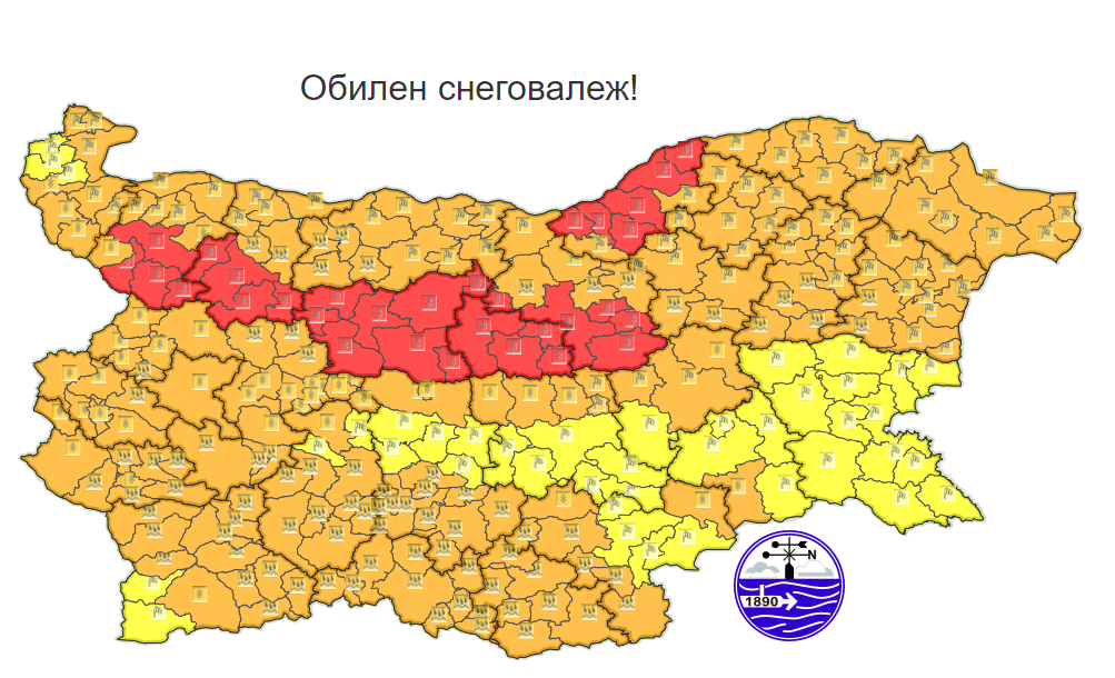 От ГДПБЗН напомнят, че според постъпилата информация за метеорологичната обстановка в страната, за утре е обявен „оранжев код“ за по-голямата част от страната, като за областите Монтана, Враца, Ловеч, Габрово, Велико Търново, Русе той е „червен“.