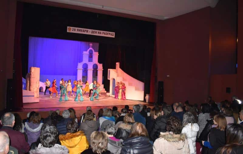 Пълната зала на Общинския културен център дълго бе огласяна от аплодисменти за изпълненията на певците от Националната опера. Те представиха мюзикъла „Mamma mia”, който е по музика и текст на Бени Андершон и Бьорн Улвеус от ABBA, либретото Катрин Джонсън, по идея на Джуди Креймър, режисьор – Пламен Карталов.