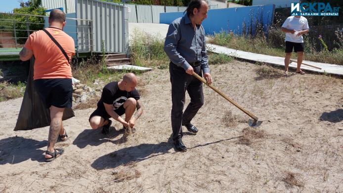 От ОЗБГ решиха да организират почистване, защото при откриването на летния сезон на плажа на 13 юни, беше установено, че там е избуяла трева. Не може да се каже със сигурност дали тя е засята по изкуствен начин там, или не, но фактите категорично сочат, че предишни години плажът не е изглеждал по този начин.