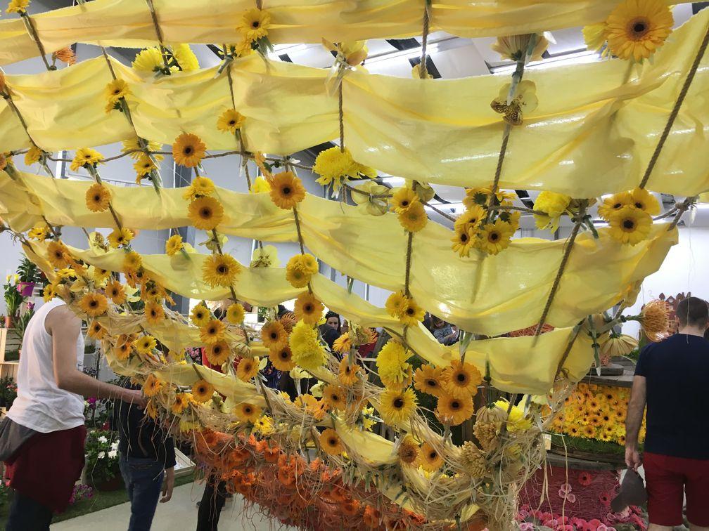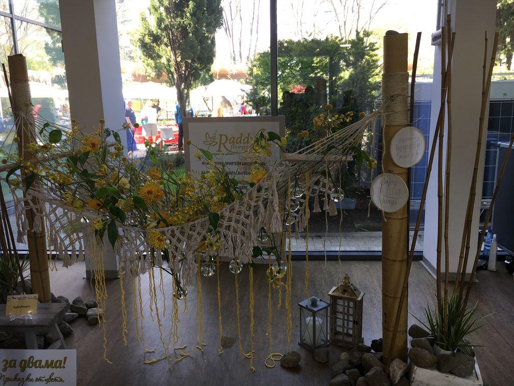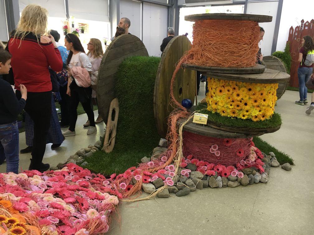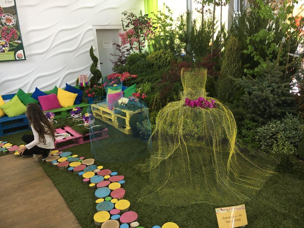 Всички зали в експозиционния център бяха отрупани с цветя. Още с влизането в най-голямата от тях може да се види красива арт инсталация, направена от различни розови, жълти и оранжеви гербери. Около нея са разположени кактуси, саксии под формата на зайчета и магаренца с петунии, ръчно направени мечета, къщичка с градинка от орхидеи.