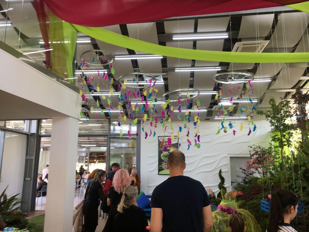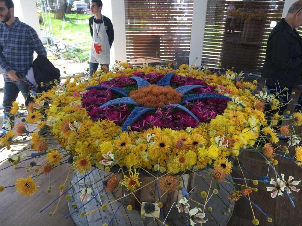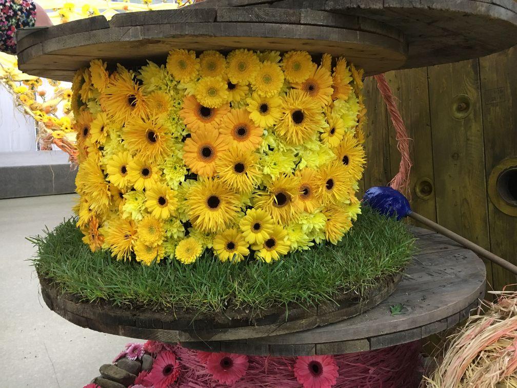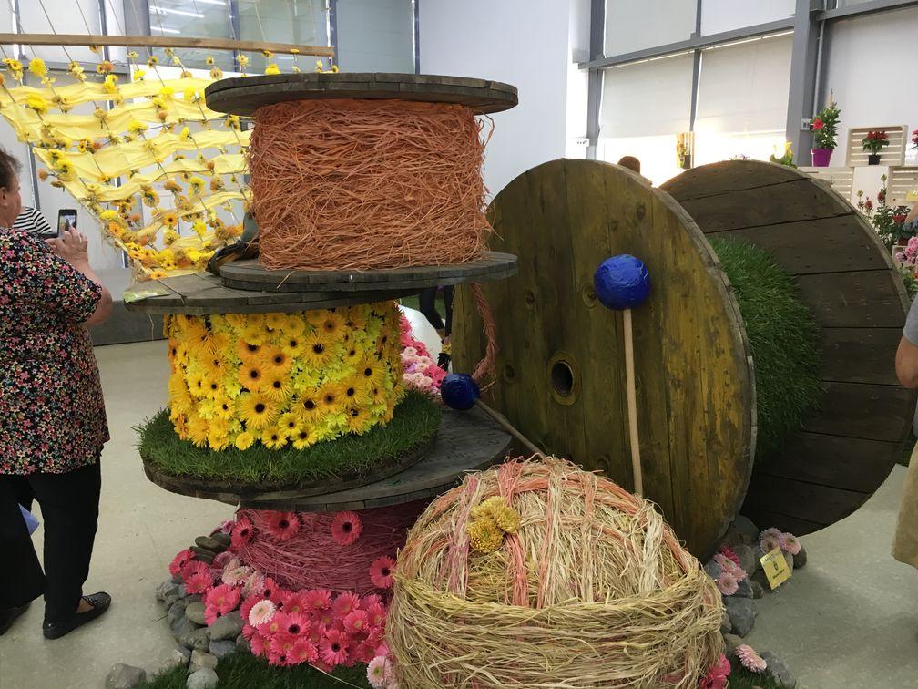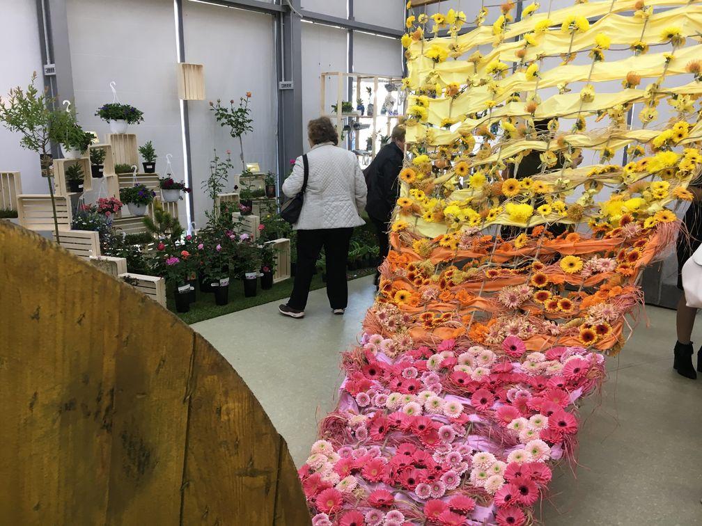 Всички зали в експозиционния център бяха отрупани с цветя. Още с влизането в най-голямата от тях може да се види красива арт инсталация, направена от различни розови, жълти и оранжеви гербери. Около нея са разположени кактуси, саксии под формата на зайчета и магаренца с петунии, ръчно направени мечета, къщичка с градинка от орхидеи.