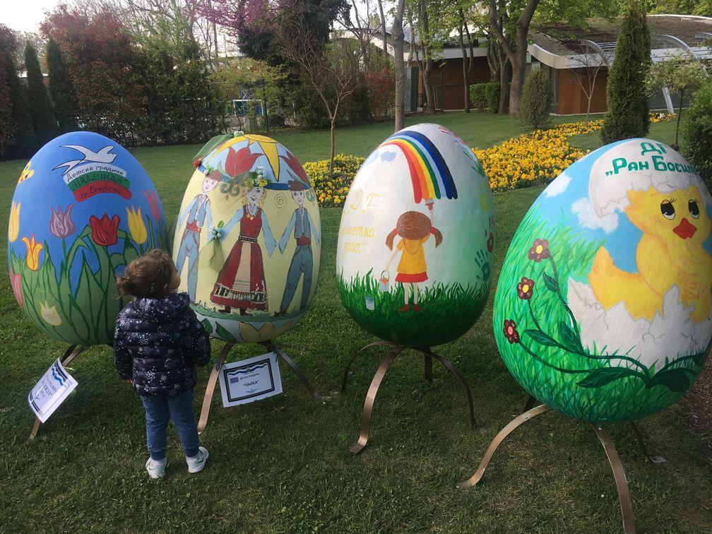 Пред експозиционния център имаше и оформена градинка с различни видове лалета – жълти, червени, розови, оранжеви, а десетки не пропуснаха да си направят снимка с тях. Срещу тях бяха разположени и големи великденски яйца, направени от ученици на различни бургаски училища.