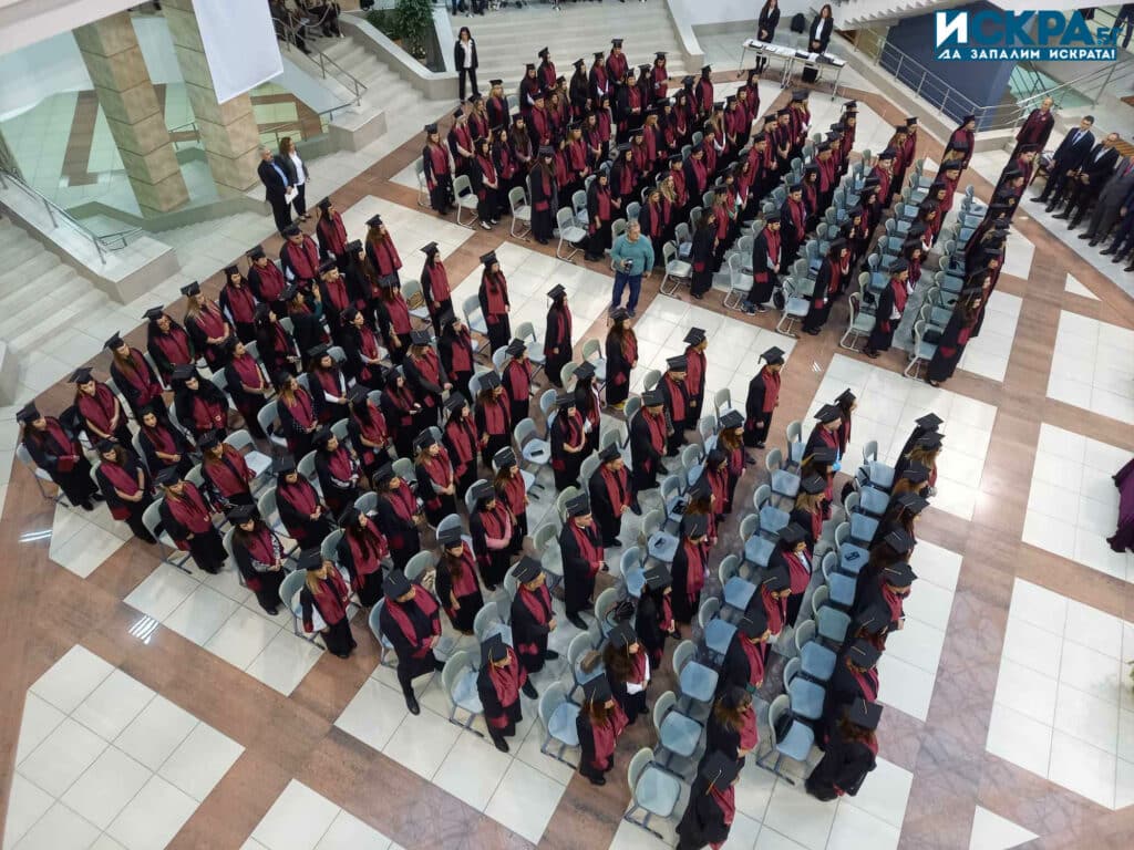 Над 300 абсолвенти от 14 бакалавърски специалности и 20 магистърски програми получиха своите дипломи за висше образование. Свидетелства за отличие и доказан стремеж за издигане авторитета на академичната общност бяха връчени и на изявените абсолвенти.