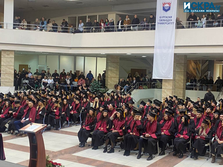 „Обявявам Випуск 2024 на Бургаския свободен университет за завършил! Обявявам правото на всеки абсолвент да получи диплома за специалност и образователно квалификационна степен, подпечатана с печат с държавния Герб на Република България.“
