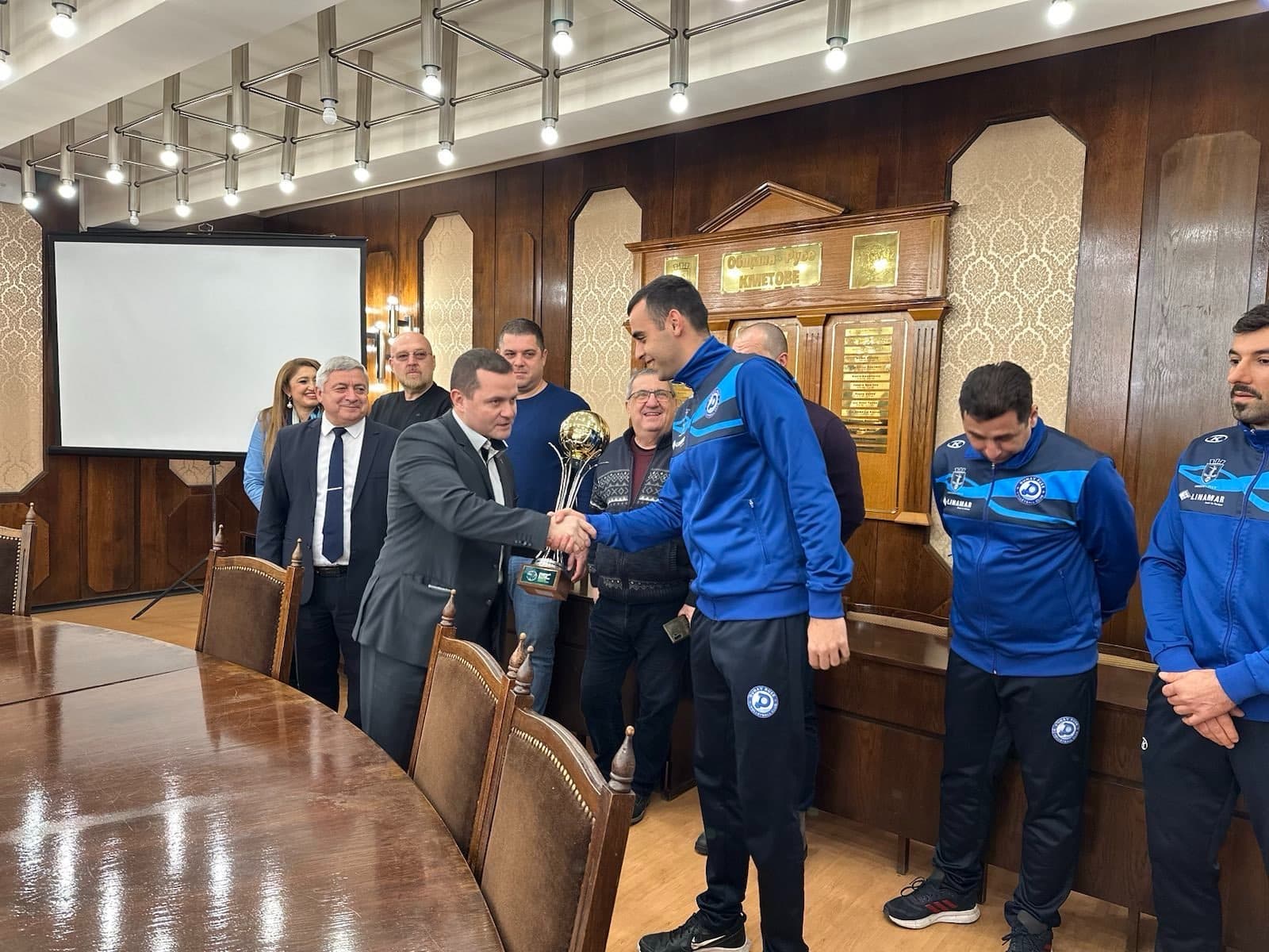 „Каквото и да кажа ще е малко, гордостта от триумфа продължава да е голяма. Купата носи радост не само за вас и вашите треньори, а за семействата ви и целия град, на които показахте своята сила“, обърна се към треньорите и състезателите кметът.