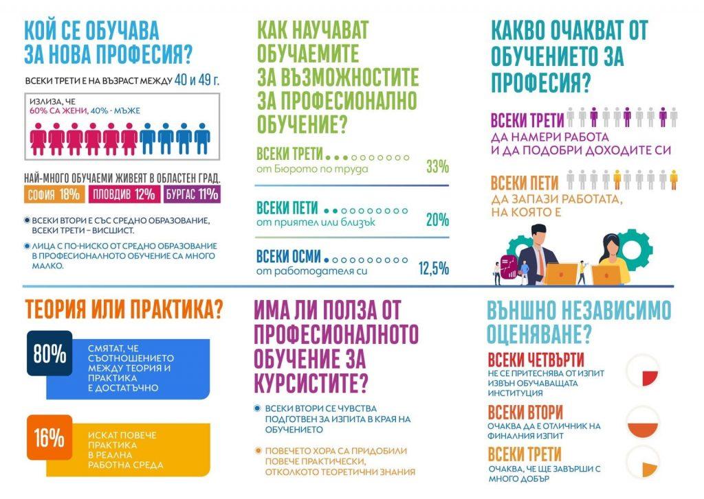 Най-активно участие в обучения за професия имат българите на средна възраст между 40–49 години, следвани от групата на 30-39 годишните, сочат данни на Националната агенция за професионално обучение и образование (НАПОО). Сравнително по-слабо представени в обученията са най-младите и хората на възраст.