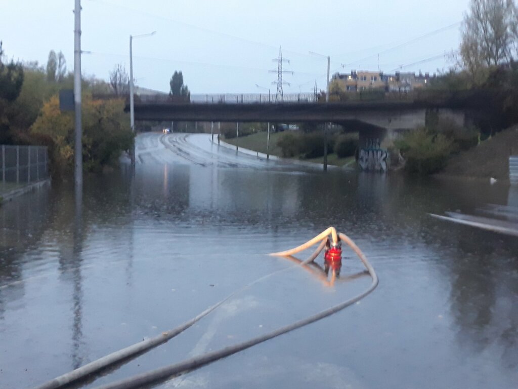 На място работят аварийни екипи и екипи на пожарната, които се опитват да отводнят участъка и да възстановят нормалното движение. За пътниците са пуснати заместващи автобуси, които се движат по маршрути: