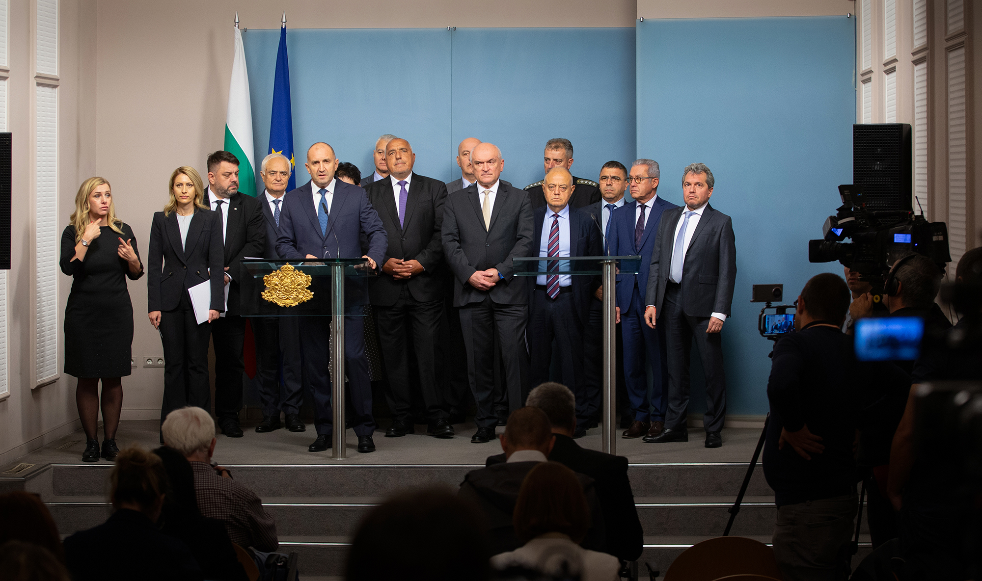 „Консултативният съвет обсъди рязкото влошаване на средата за сигурност в региона на Близкия Изток и произтичащите от това заплахи и рискове за България и готовността на страната ни за тяхното преодоляване. Всички участници изразиха своята загриженост от ескалацията на въоръжените сблъсъци и тежката хуманитарна криза в региона. Ние се присъединяваме към призивите на международната общност за деескалация, за въздържане от употреба на сила и за недопускане въвличането на други държави, което би било заплаха за мира не само в регионален, но и в глобален мащаб. Съветът счита, че е неотложно незабавното прекратяване на военните действия и полагането на допълнителни усилия за диалог и намиране на мирен изход от ситуацията, базирани на резолюциите на Съвета за сигурност на ООН и международното право.“