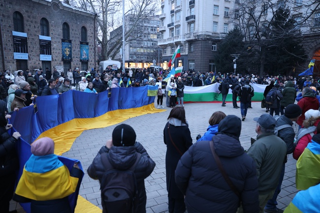 В понеделник граждани се събраха пред президентството по повод 3 години от началото на войната в Украйна. Събитието премина под надслов „Мир за Европа и света чрез победата на Украйна!“.