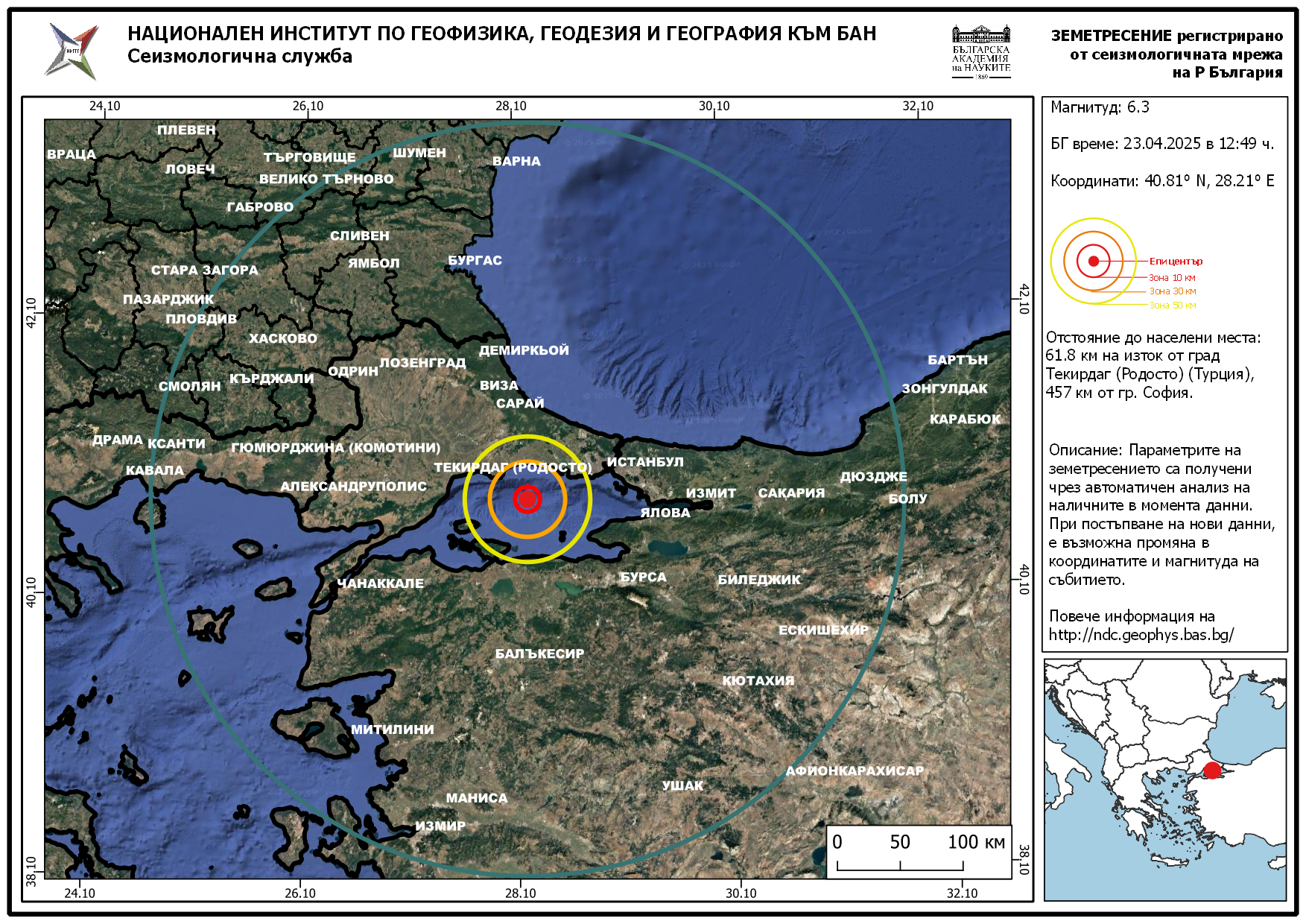 Според информация на уебсайта на Председателството по управление при извънредни ситуации в Турция (AFAD), в сряда бе регистрирано земетресение с магнитуд 6,2, чийто епицентър е бил в Мраморно море, край Силиври, Истанбул. Установено е, че трусът, усетен в Истанбул и околните провинции, и дори в България, е станал на дълбочина 6,92 километра, предава „Анадолска агенция“. Последваха множество вторични трусове.