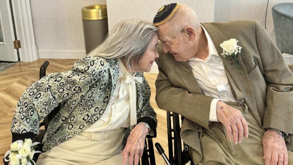 Церемонията се проведе в същия Дом за възрастни хора, където са се срещнали за първи път, и четири поколения от семейството на Бърни са празнували. Четирима свидетели са вдигнали белите стойки на хупата /навес, поддържан от четири пръта, традиционен за еврейските сватби/ и се усмихвали на двойката, докато ги карали в инвалидните им колички на церемонията.
