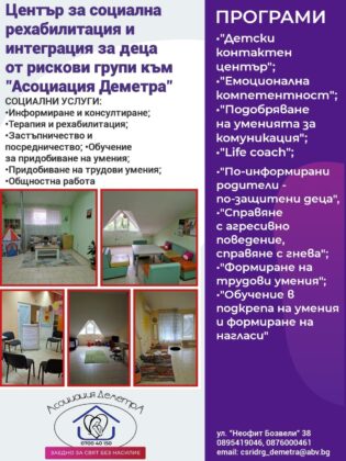 Моля подкрепете първият български контактен център към Асоциация ,,Деметра“.Те закрилят нашите деца.