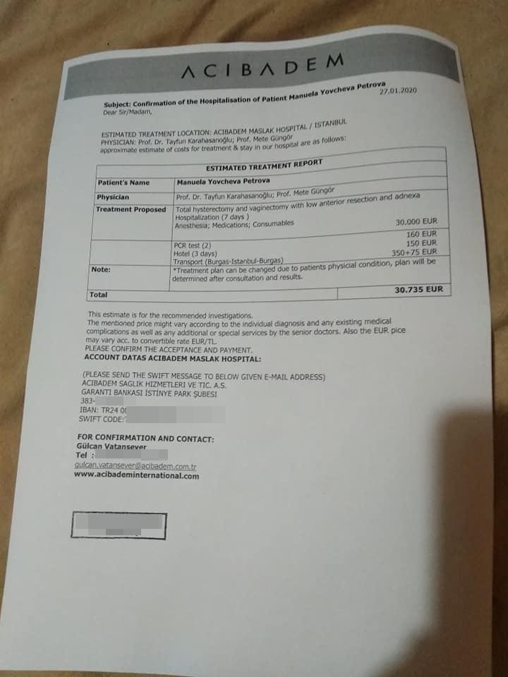 Въпреки COVID ограниченията и забраните за пътувания, които ни съпътстваха през изминалата година, възпитателката успява да се изследва в истанбулска болница, където й дават надежда за живот. За жалост обаче, офертата, която получава за лечението си от 31 000 евро, е непосилна за нея и семейството й.