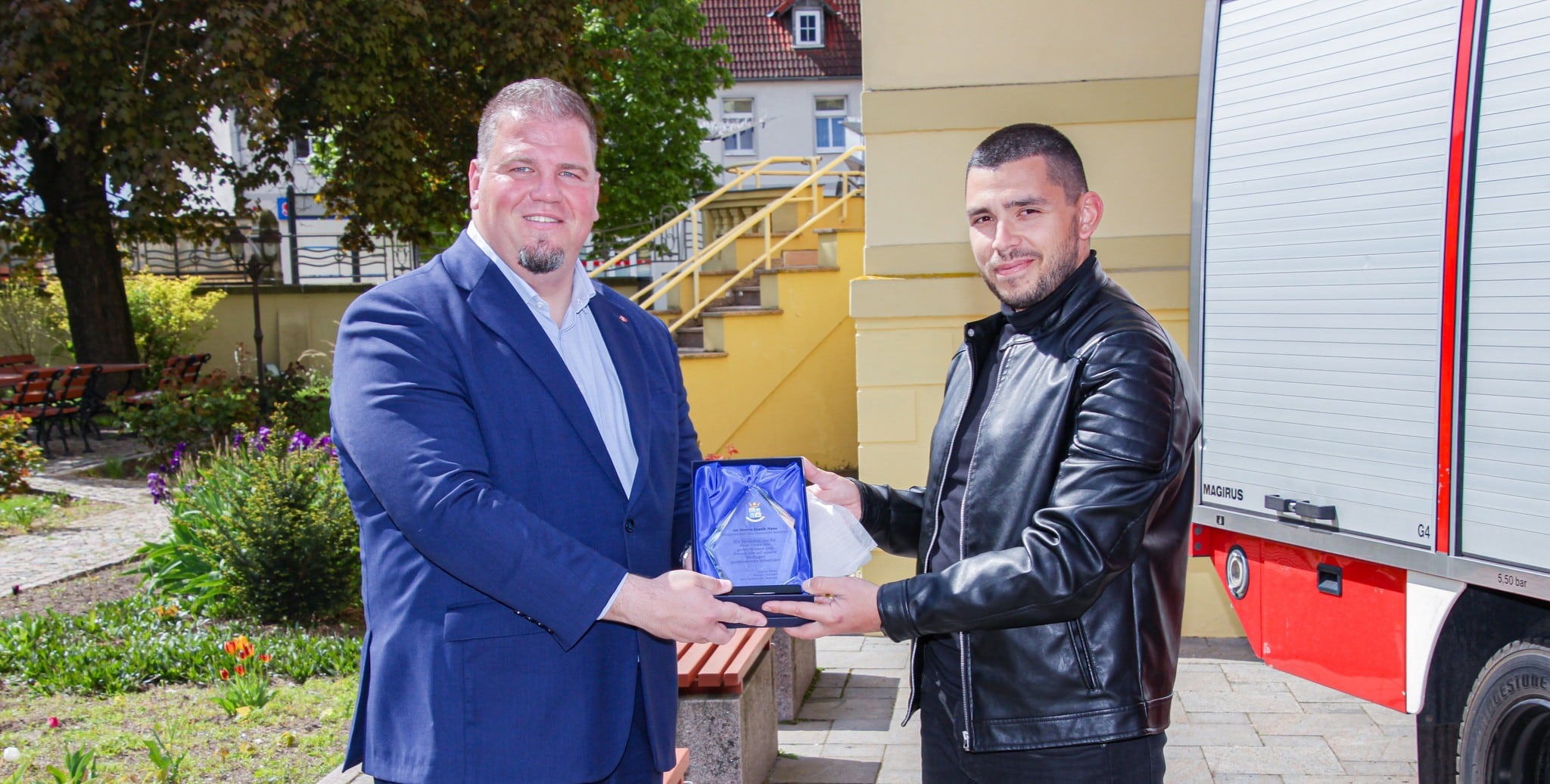 Автомобилът бе подарен от кмета на Барлебен Франк Насе /Frank Nase/ на заместник-кмета Денис Диханов, който пристигна в града заедно с представители на местната пожарна служба за участие в 9-тата международна борса за сътрудничество в Барлебен 2024.