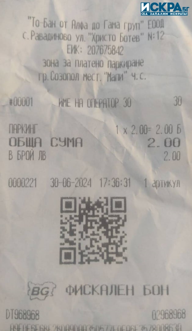 Гражданин подаде сигнал в редакцията на Искра.бг, че на плаж „Смокиня“ в Созопол е била разчертана синя зона и фирма издава касови бележки при паркиране в района.
