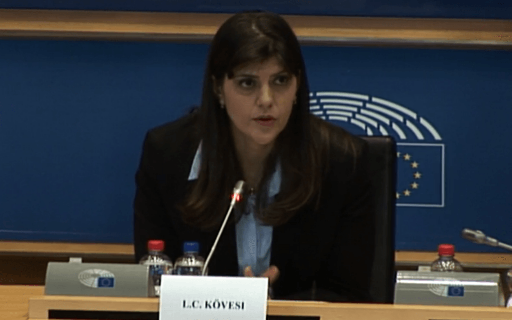 Лаура Кьовеши на изслушването си в ЕП, 26.02.2019. Скрийншот