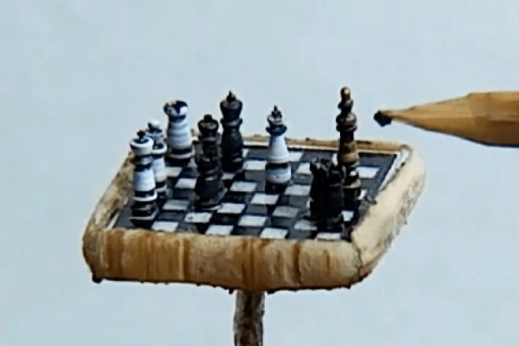 Турски микро-скулптор e създал най-малката дъска за шахмат, предават от „Anadolu Agency“. На Неджати Коркмаз му е отнело 6 месеца ежедневен шестчасов труд, за да създаде керамичния шахматен комплект с размери 9 на 9 милиметра. „От време на време бях много уморен, но изпитвам голямо удоволствие да видя завършеното си произведение на изкуството“, каза той.