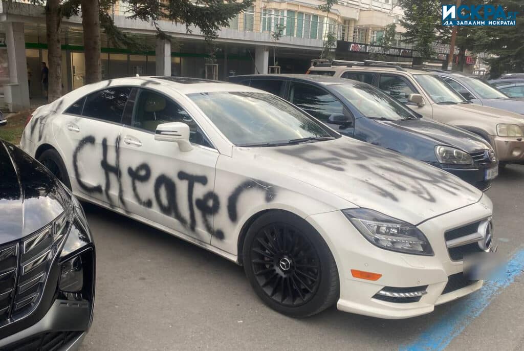 Автомобилът на неизвестен бургазлия е осъмнал днес с обидни надписи, надраскани с черен спрей върху бялата боя. Луксозният „Мерцедес“ е паркиран на ул. „Шар Планина“ в ж.к. „Братя Миладинови, съвсем близо до централната градска част.
