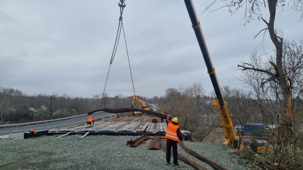 Сега се работи по горното строене на моста – нарежда се армировката, предстои да бъдат излети пътната и преходните плочи, да се изградят тротоарните конзоли и отводняването. С това строителството на съоръжението ще приключи и ще се пристъпи към въвеждането му в експлоатация. След пускане на движението по новия мост ще се премине към премахване на временния път – брод, по който в момента преминават моторни превозни средства.