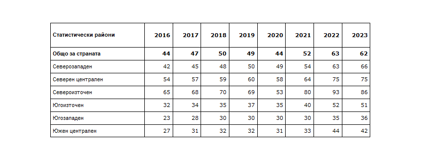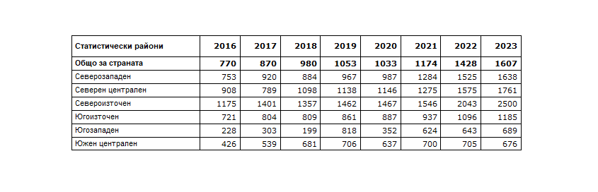 През 2023 година е налице повишение спрямо предходната година в цената на сделките с ниви във всички статистически райони, с изключение на Южен централен район, където е регистрирано намаление с 4.1%. Най-висока е цената в Североизточния район – 2500 лв. на декар, с 22.4% повече спрямо предходната година. В Северозападния район цената на сделките с ниви отбелязва повишение и достига 1638 лв. на декар /със 7.4%/, в Северния централен район – 1761 лв. на декар /с 11.8%/, в Югоизточния район – 1185 лв. на декар /с 8.1%/, в Югозападния район – 689 лв. на декар /със 7.2%/.