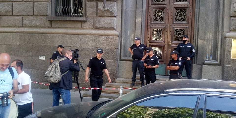 В момента полицейски служители са преградили с лента входа на Народното събрание и не дават на никого да се доближи до сградата.