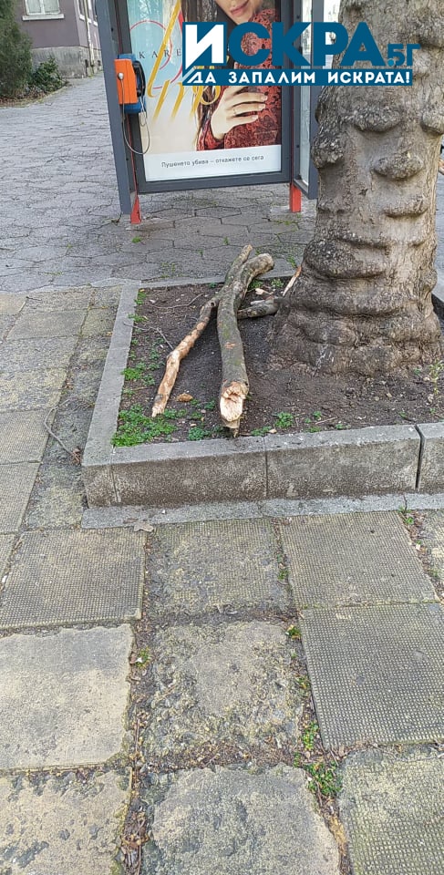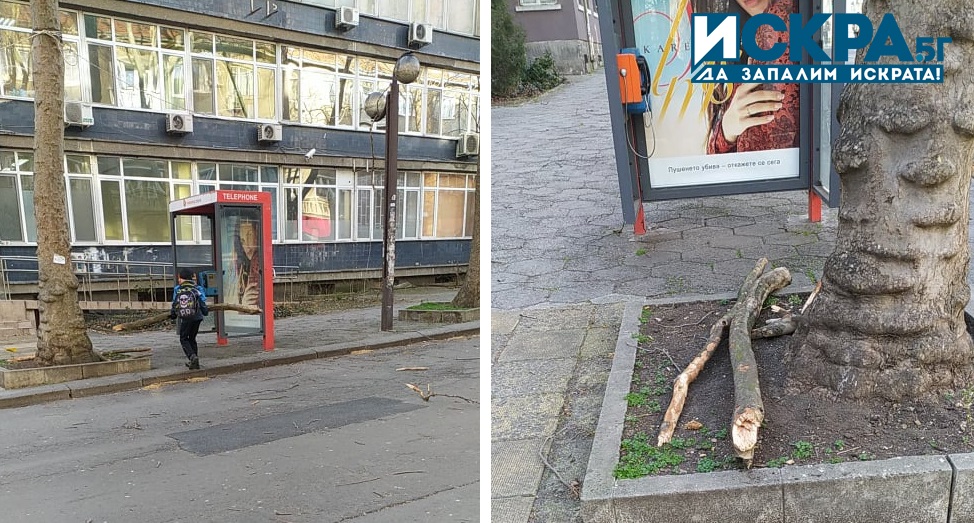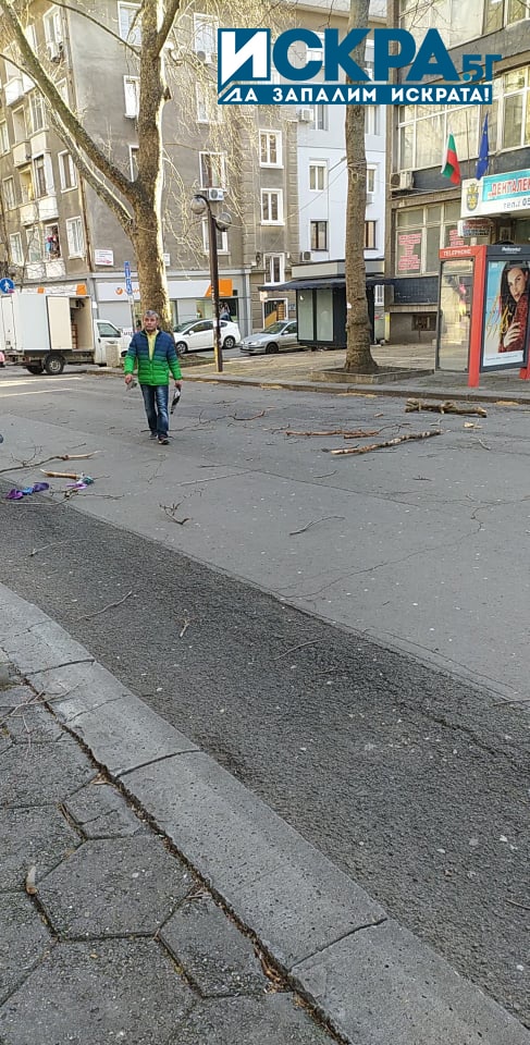 Това разказа очевидката Михаела Калева и сподели, че живее в района, а през годините е писала няколко жалби до Общината, свързани с опасни клони между улиците „Александровска“ и „Македония“.