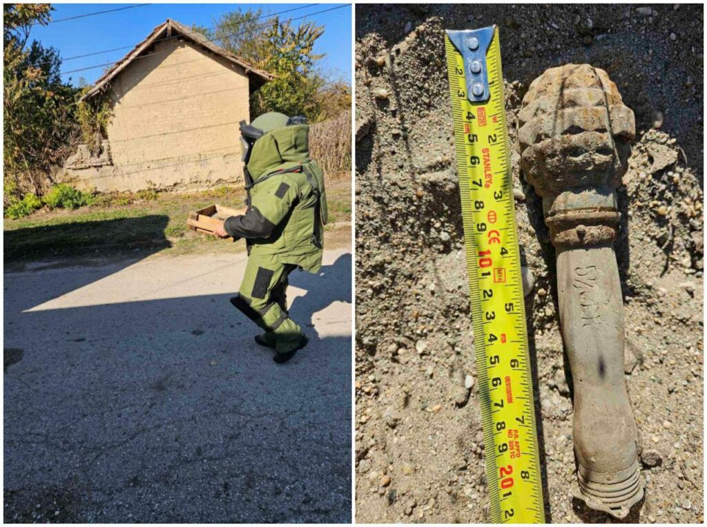 Специализиран екип от Сухопътните войски обезвреди опасен невзривен боеприпас, открит вчера при изкопни работи в частен имот в село Новачене, Област Плевен, съобщиха от Министерство на отбраната. Боеприпасът – силно корозирала ръчна граната тип „Бухалка“, бе обезвреден от екипа на 55-ти инженерен полк, под ръководството на старши лейтенант Калоян Гинчев.