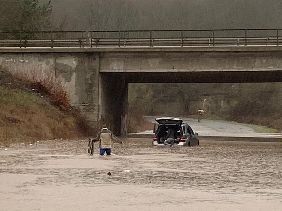 Затворен е пътят Извор – Зидарово. Причината е огромното количество вода върху платното от преливника на язовир „Хур…