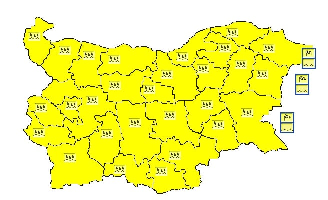 Днес времето ще бъде облачно, дъждовно и ветровито. Обявен е жълт код във всички области у нас, съобщават от Националния институт по метеорология и хидрология.