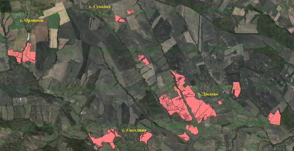 Имотите, за които става дума, са земеделски – обработваеми ниви и пасища. Приетото предложение променя предназначениeто им „за производство на електрическа енергия, електрически подстанции, складове и съхранение на електроенергия“. Общата им площ е малко над 8280 декара и обхваща голяма част земеделска територия около селата, както е показано на изображението над статията.