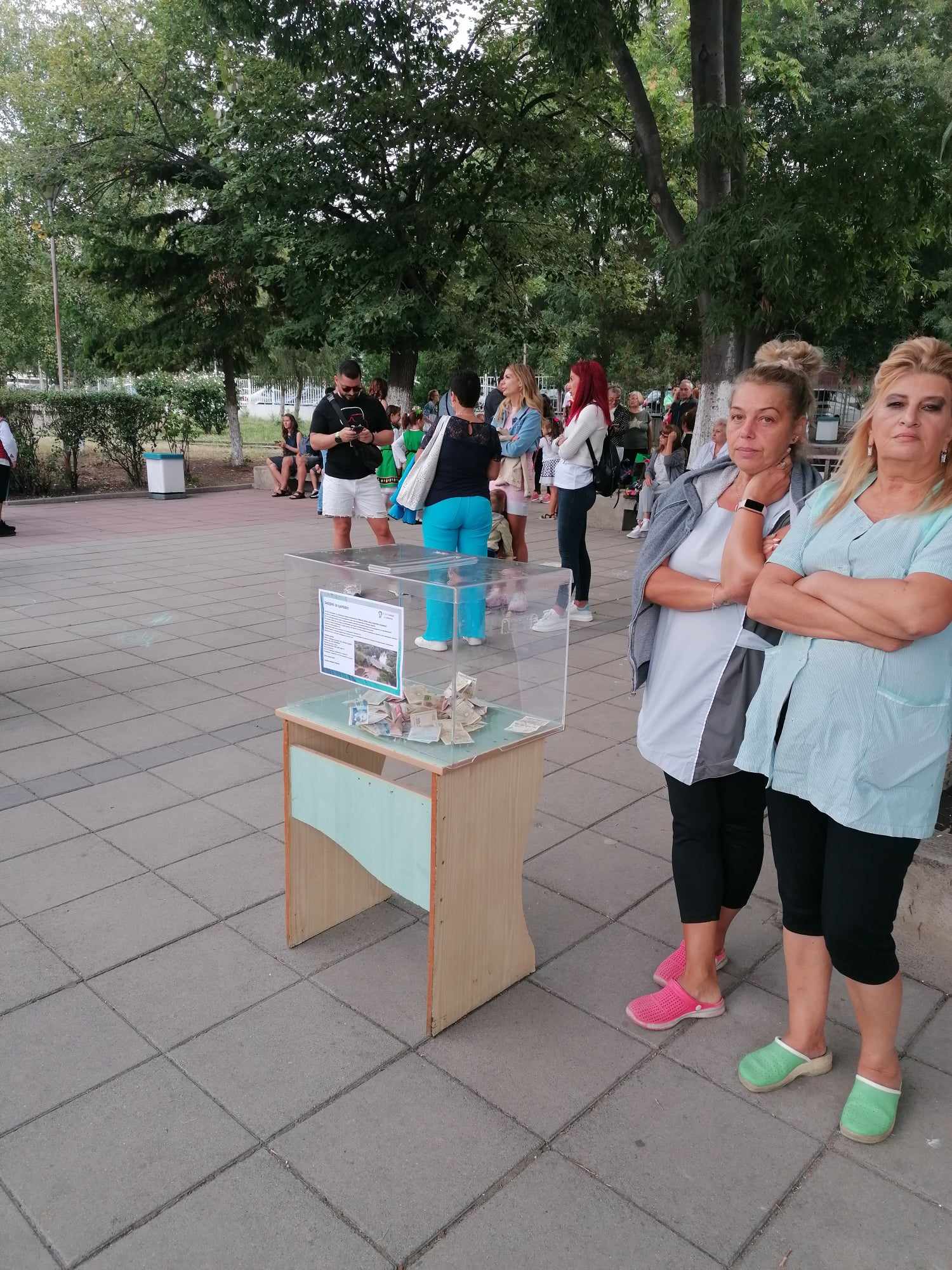 Три кутии за дарения бяха сложени в двора на училището, с по две служителки от общината за надзор.