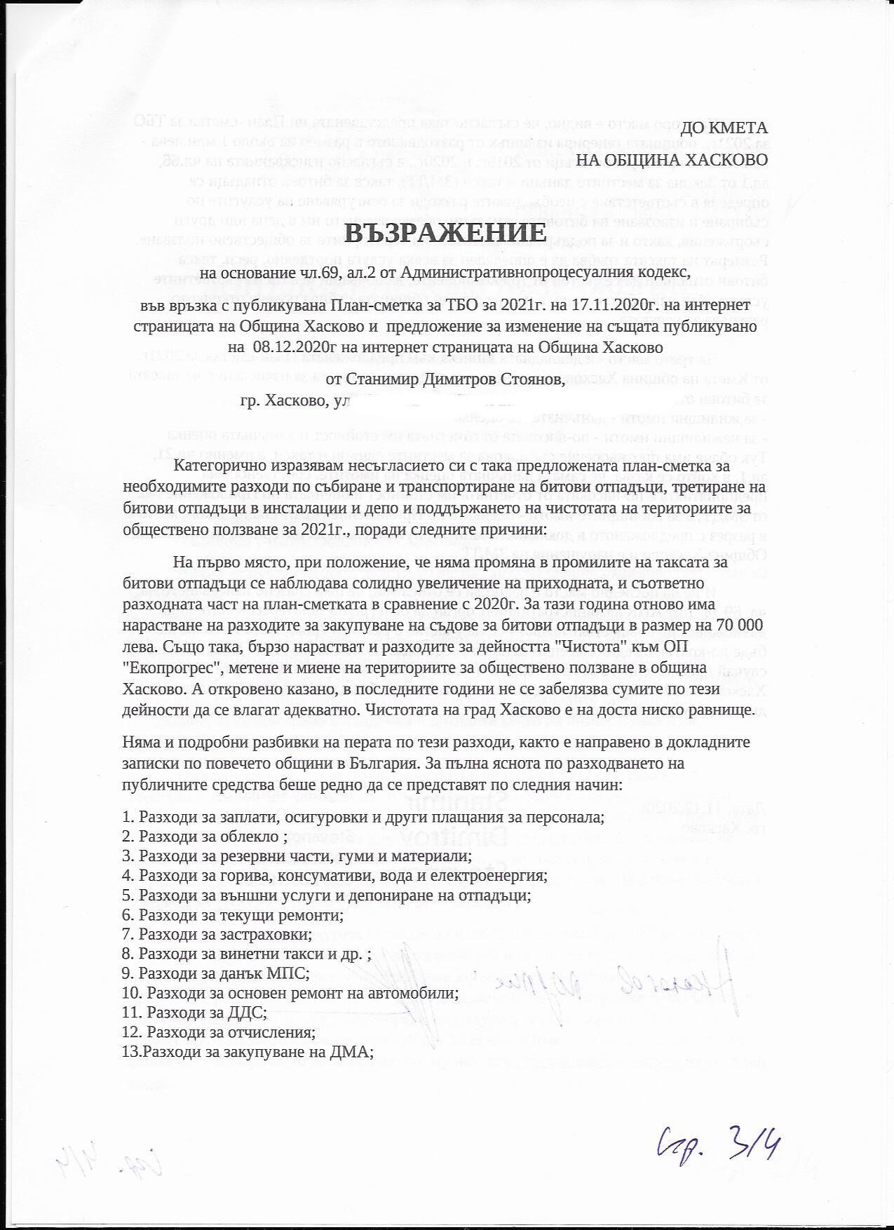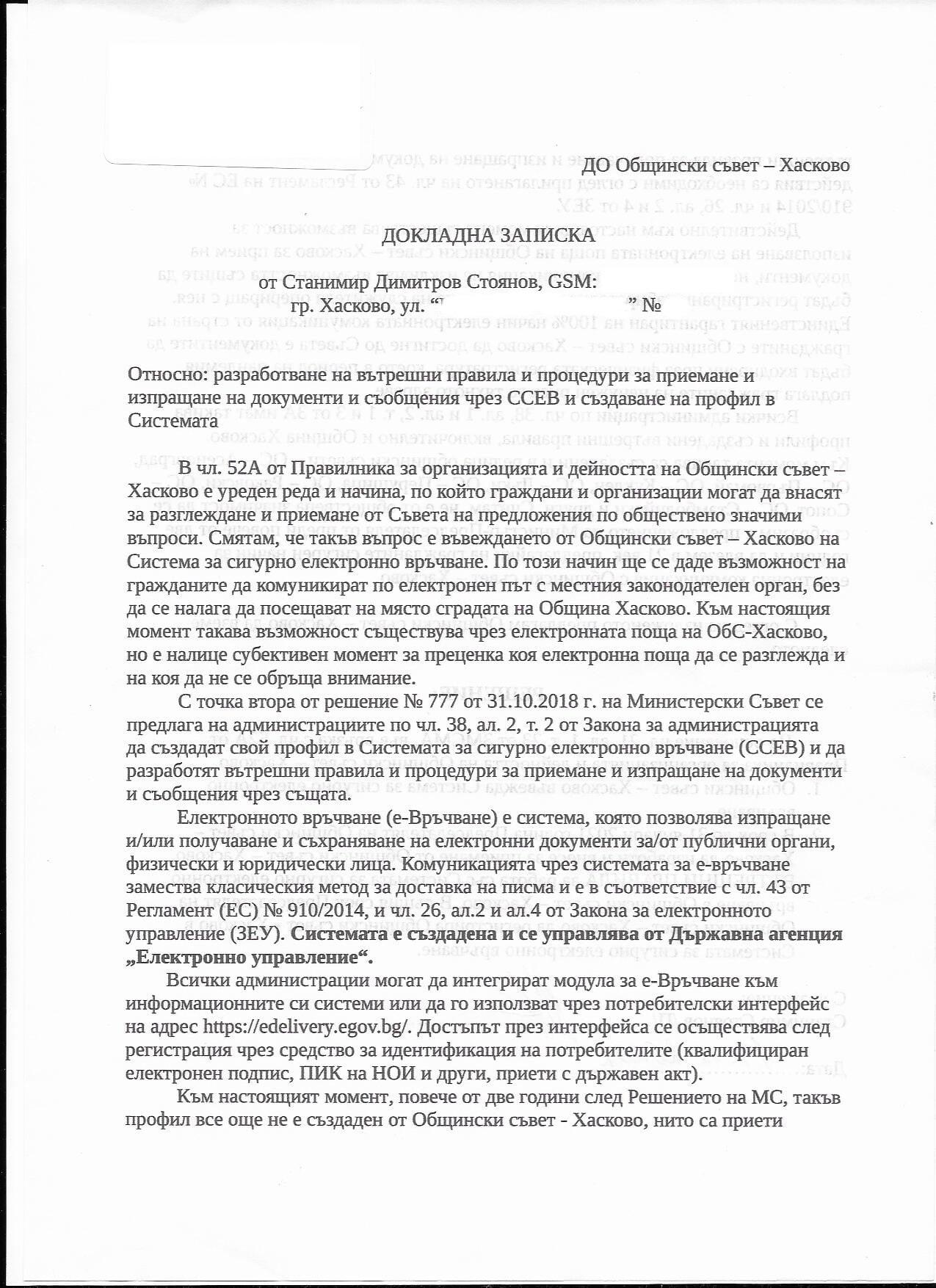 От Искра.бг потърсихме председателя на Общинския съвет в Хасково Таня Захариева, която е и представител на ПП ГЕРБ, за да разберем и нейната страна по въпроса. След като чу в каква връзка се обаждаме, Захариева каза само, че „Имаме преписка, образувана в Комисията за защита на личните данни и тя е в процес на придвижване, само това мога да ви кажа като информация“.