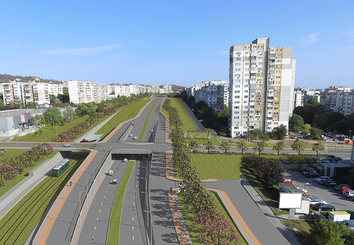 Идеята е да се реализира пълният му габарит с пътни възли на две нива с пресичащите се бул. „Константин и Фружин“, ул. „Атанас Москов“, бул. „Янош Хунияди“, бул. „Република“, бул. „3-ти март“/ул. „Вяра“, ул. „Поп Димитър“, бул. „Христо Смирненски“. При еднотипните пътни възли от вида „Диамант“ директното трасе на бул. „Цар Освободител“ се явява главно направление, а всички пресичащи го улици – второстепенни, със светлинно регулирани кръстовища на две нива. Така се обезпечава безконфликтно пресичане на главната мрежа и по-бързо и безопасно отвеждане на целия транзитен трафик по посока изток – запад, коментираха представителите на проектантския екип.