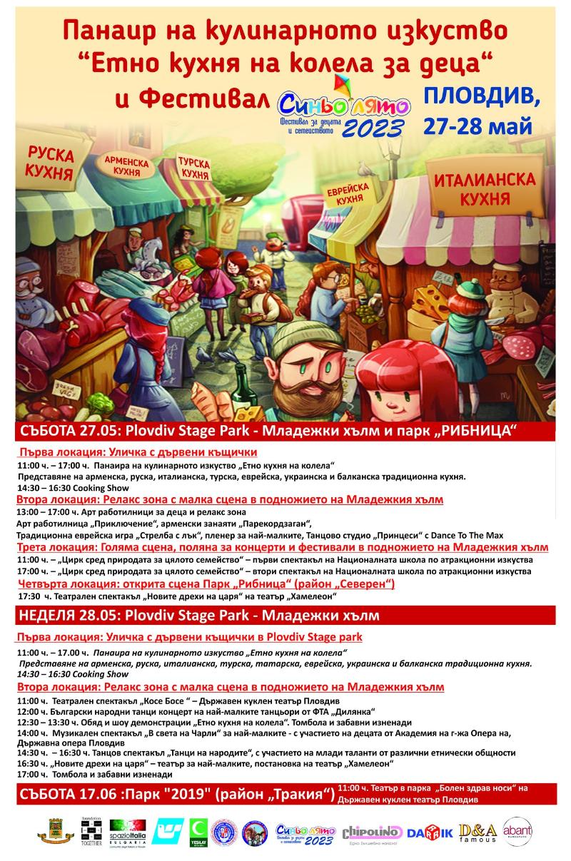 Заедно с кулинарния панаир ще се проведе и третият Фестивал за децата и семейството „Синьо лято“, а на голямата сцена на Plovdiv Stage Park, за първи път ще бъдат представени два циркови спектакъла. През съботния ден, между двете циркови представления, всички деца ще могат да се включат в интересни арт работилници и игри на народите, а в неделя, на малката сцена ще гледат музикални, театрални и танцови спектакли. Театър в парка за децата и семейството ще има в различни райони на града.