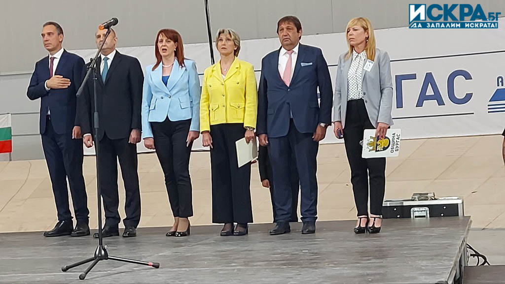 Впоследствие кметът на Бургас Димитър Николов, областният управител на Бургас Мария Нейкова, президентът Румен Радев, без възможност да им се задават въпроси, казаха няколко думи. Чу се и химнът на България, а след това официалните гости седнаха да гледат мача от полуфиналите на баскетболния шампионат между „Черноморец“ и „Рилски спортист“, предаде журналистът на Искра.бг. Чуйте: