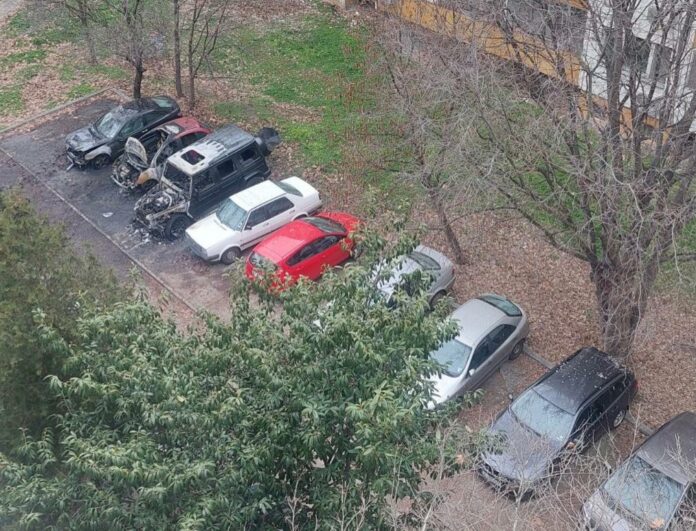 В 03:31 часа тази сутрин е получен сигнал, че в ж.к. „Славейков“ на паркинга зад бл.80 гори автомобил. До пристигане на екипите се е чул гръм и огън е обхванал още три автомобила, паркирани в близост.