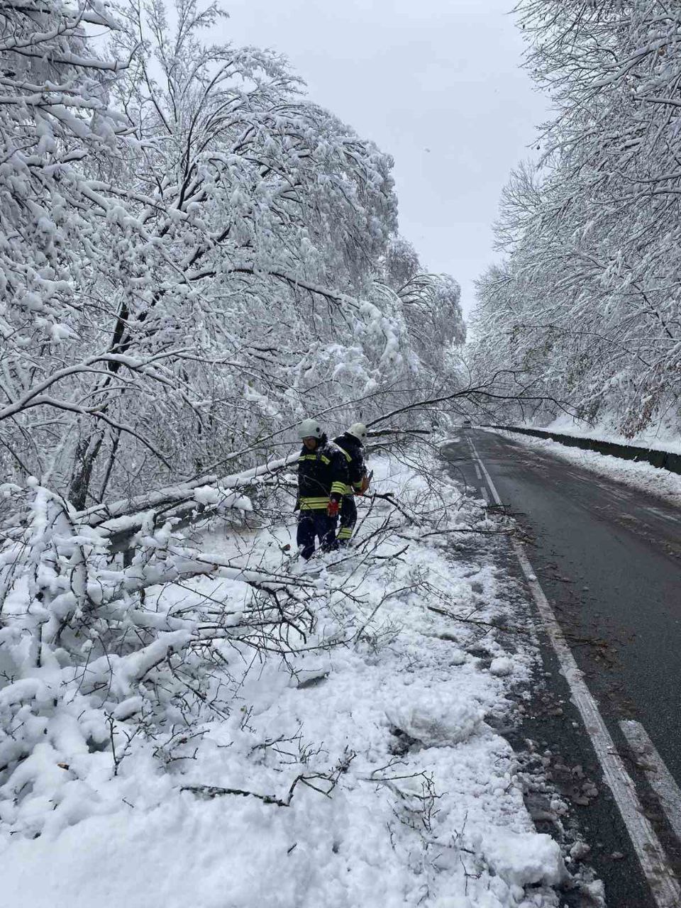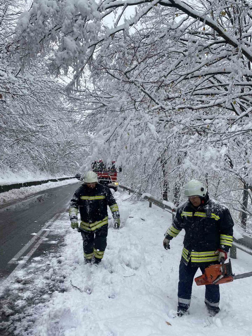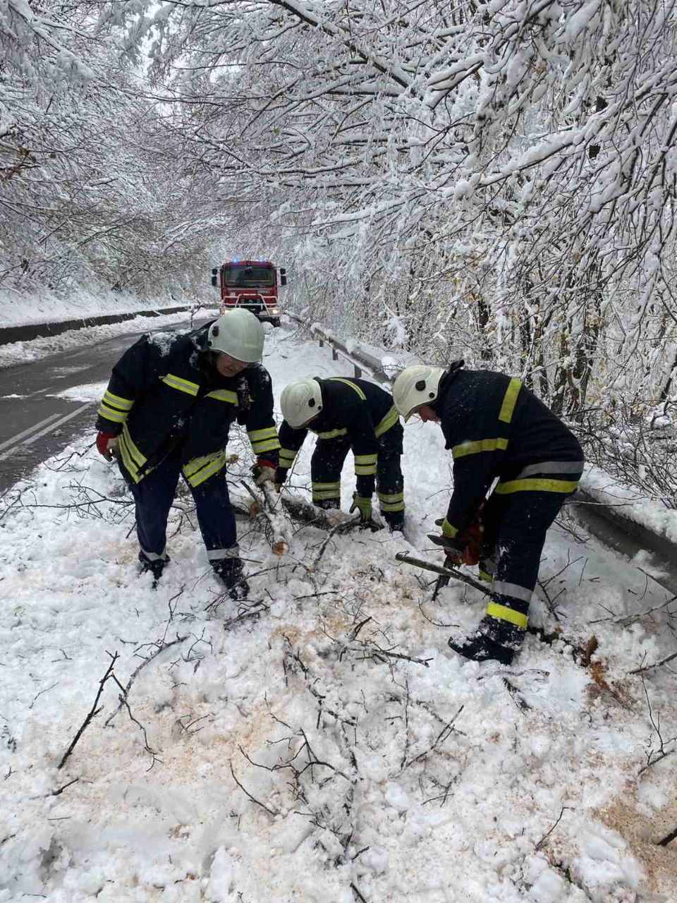 Друг екип на РСПБЗН-Сливен е разчистил пътя Сливен-Ичера-Градец от паднали дървета и клони, но пътната настилка не е изчистена от снега. В град Сливен и общината са отработени всички сигнали.