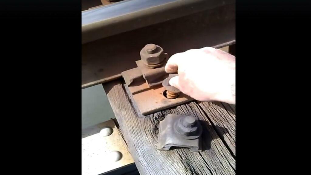 Във видеото се вижда как болтовете, държащи железопътната линия, са развинтени и хвърчат при всяко преминавания на влак, край една от най-големите гари в страната – „Горна Оряховица“.