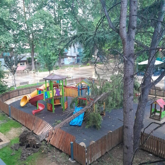 „Слава богу, че нямаше деца на площадката в момента на бурята. Щетите са значителни, но най-важното е, че никой не пострада“, коментира един от свидетелите на случилото се пред Искра.бг.