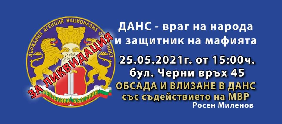 За да получат отговор на тези въпроси, българските граждани организират обсада на сградата на Държавна агенция „Национална сигурност“, находяща се на бул. „Черни връх“ № 45, насрочена за 25.05.2021 г. от 15:00 ч. Мероприятието има следните цели: