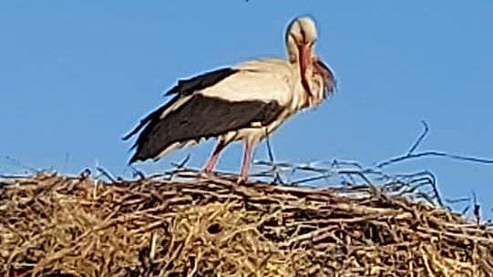 В гнездото на щъркела има 4 малки новоизлюпени. Ако не се помогне на щъркела – нито той, нито малките, ще оцелеят.