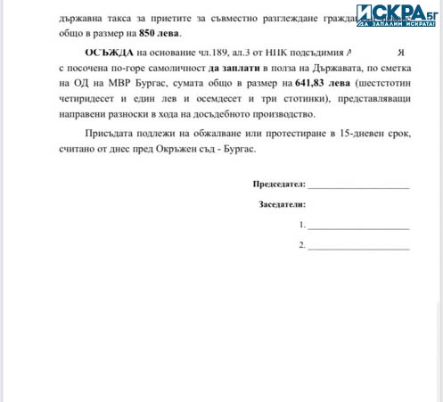 За това престъпление германецът е осъден на 2 години „лишаване от свобода“, при първоначален общ режим на изтърпяване. От това време му се приспада периодът, през който е бил задържан първоначално с прокурорско постановление, а впоследствие с мярка за неотклонение „задържане под стража“, считано от 27 август 2024г. до влизане на присъдата в сила. Според първоинстанционната присъда той ще трябва да заплати и малко над 25 180 лева като обезщетения към родителите, детето и направени разноски в хода на досъдебното производство.