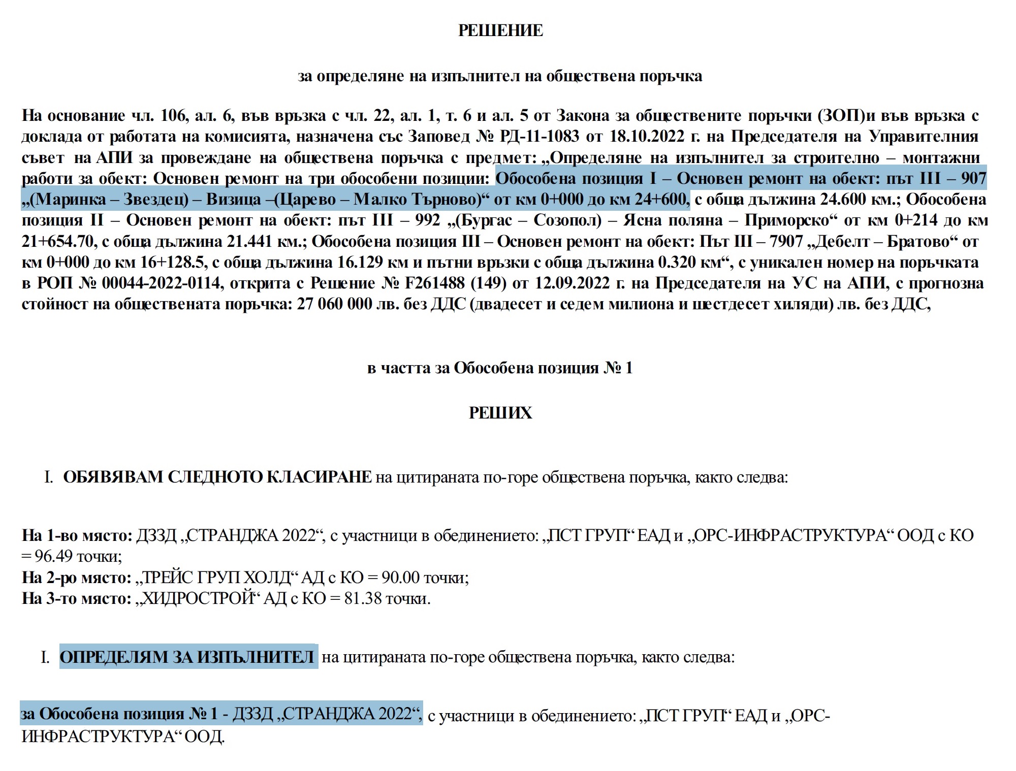 Наскоро със съдействието на Бачийски Агенция „Пътна инфраструктура“ и Министерство на регионалното развитие и благоустройството реагираха изключително бързо и в рамките на само на около 10 дни успяха да задвижат процедурата, която се бавеше повече от 10 месеца по избор на изпълнител на ремонт на ключов път между селата Росен, Веселие и Ясна поляна в общините Созопол и Приморско.