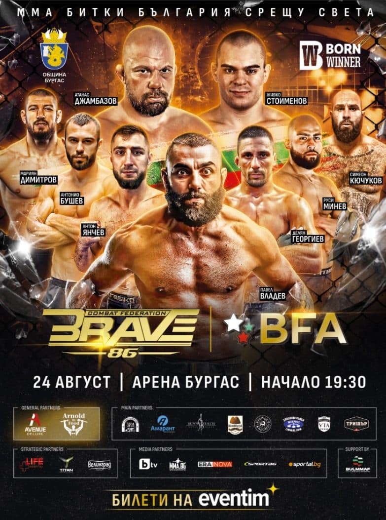 На 24 август в зала „Арена Бургас“ ще се проведе грандиозната Гала вечер BRAVE 86 Burgas, която обещава да предложи незабравими ММА битки. Събитието е част от европейското турне на престижната ММА организация и ще бъде излъчвано по целия свят. Мачмейкърите на UFC също ще следят внимателно събитието, търсейки нови таланти.