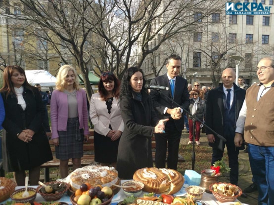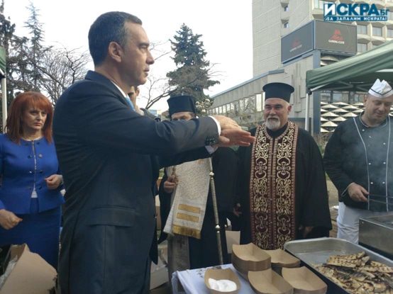 На трапезата задължително трябва да има обредни хлябове. Днес един от тях беше разчупен според традицията от кмета Димитър Николов, защото той е символичен домакин на града.