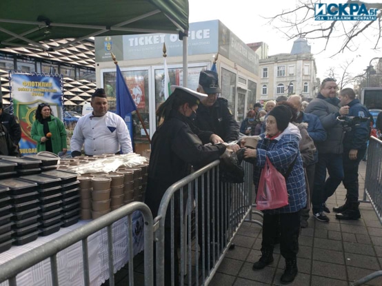 Осветиха празничната трапеза и курбана в Бургас. Десетки жителите на морския град се наредиха на опашка, за да получат от печената риба и чорбата.
