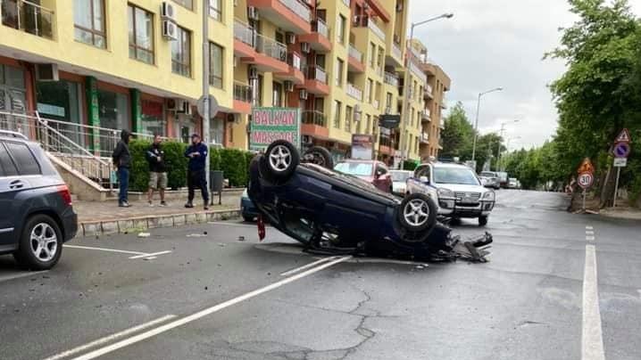 При злополуката леката кола се е блъснала в крайпътно дърво, преобърнала се е и се е ударила в паркирано вляво на пътното платно „БМВ 7“, с бургаска регистрация, нанасяйки му материални щети.