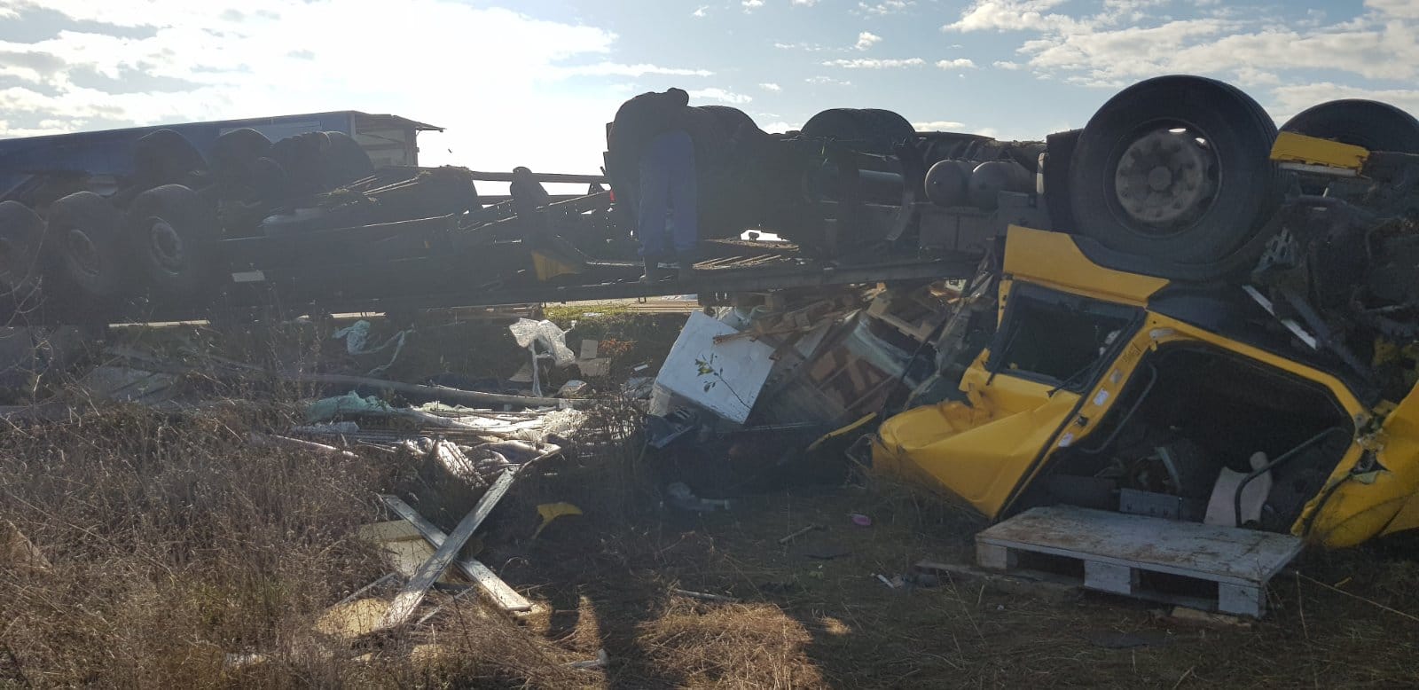 Не се е стигнало до разсипване на товари. Пътният трафик не е нарушен. По случая е образувано досъдебно производство.