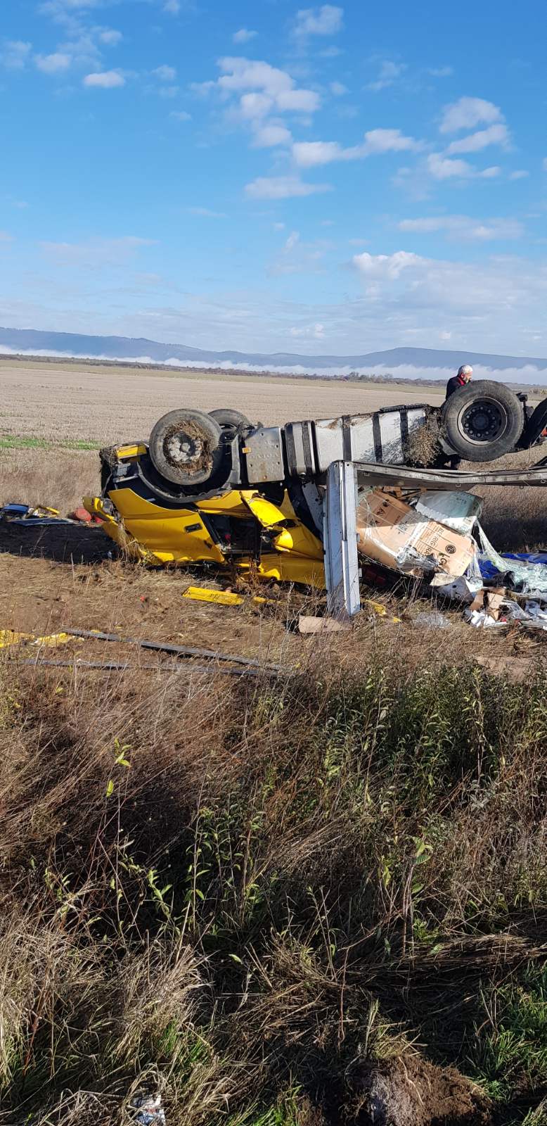 Злополуката е станала около 02:30 часа снощи на пътя София – Карнобат -Айтос – Бургас /км 460 – в района около с. Пирне при прав пътен участък при спускане/. 49-годишен бургазлия е управлявал товарен автомобил „Volvo“ – влекач с прикачено полуремарке, с надписи „Еконт“. Заради движение с несъобразена с релефа на пътя скорост обаче, той е самокатастрофирал, преобръщайки се в крайпътна канавка.
